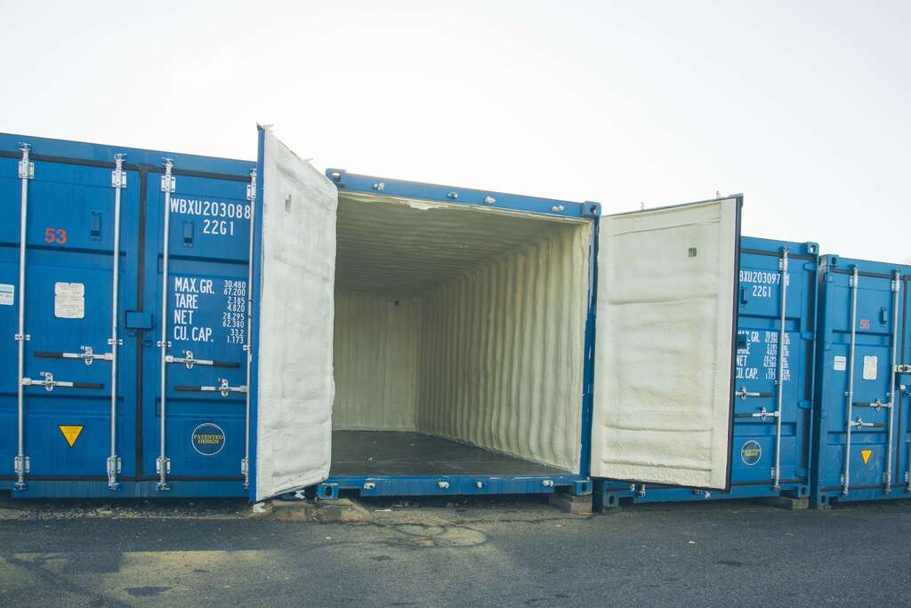 A 20 x 8 self storage unit lined with PU spray foam.